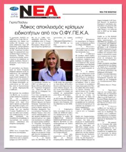 «Νέα της Βοιωτίας»-Γιώτα Πούλου: «Άδικος αποκλεισμός κρίσιμων ειδικοτήτων από τον Ο.ΦΥ.ΠΕ.Κ.Α.» 17-7-202517 Ιουλίου 202522 Ιουλίου 2025